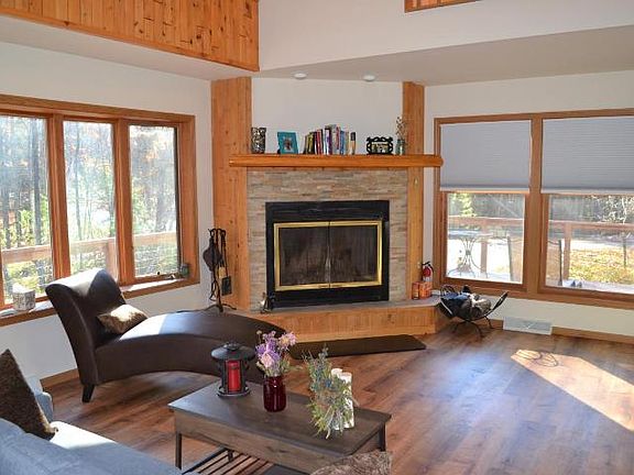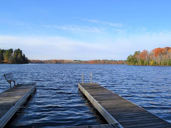 Charming Chalet featuring 7 acres and roughly 750 of frontage on Lake Emma! The home itself is only 20 years old, but has already seen significant updates and upgrades including all appliances and mechanics as well as flooring, paint, composite deck and fireplace. The covered portion of the deck is as comfortable and relaxing as it gets and leads to a cozy fire pit area and the lake shore which features a large floating pier that stays in the lake year round for zero maintenance. The upstairs loft can be used as a third bedroom or any number of things including a home office or play area. The unfinished basement has an egress window and could be easily finished for additional living space.