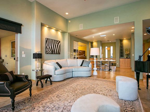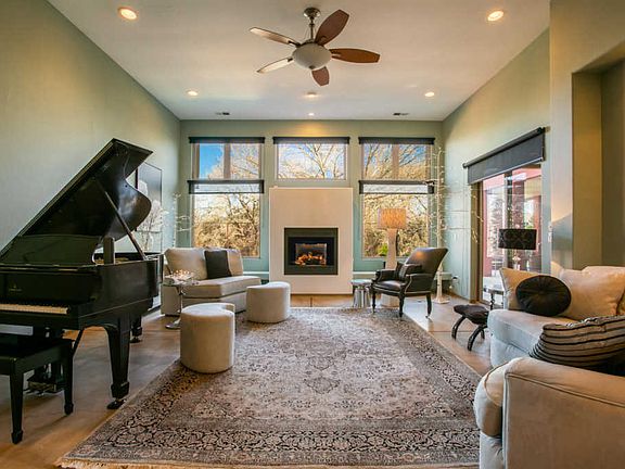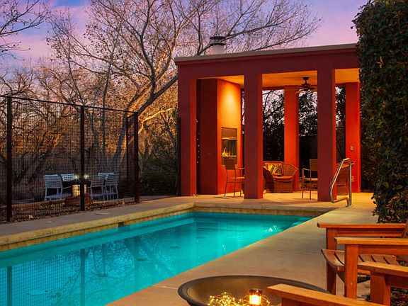 STUNNING & HIP contemporary in the Bosque (forest of Open Space) WALK to work; walk to Lunch and Dinner! Walk to the grocery store! Walk in the Bosque! Property backs to the Bosque and is about 400 yards from the Rio Grande! Exceptional contemporary home in small, very private gated community w/ in-ground 4.5 Ft deep gunite lap pool overlooking the Bosque. Enjoy those beautiful summer evenings on the patio with a gas fireplace overlooking the Bosque. Chef's kitchen with granite and 6 burner Wolf stove, opens up to small breakfast area and large family room. Elegant living/dining room separated from family room & kitchen by 3 way gas fireplace. Large master suite on main floor opening to the pool and the Bosque. 2nd bedroom on main floor is perfect for guests or an office.