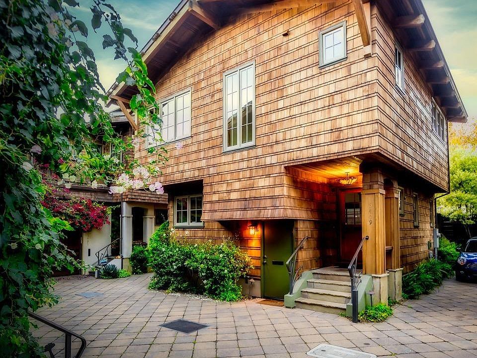 What a wonderful location and lifestyle! Tucked away off the street with access to everything College Ave has to offer is 6409 Benvenue Ave. Designed by Jarvis Architects, this 4 bed, 3.5 bath single family home exemplifies quality craftsmanship from top to bottom. Built as one of 6 new homes in 2011, the attention to detail and superior quality is truly unique. Connecting the kitchen, living, and dining areas is the open-concept living space with charming craftsman style molding and large windows. This space also features glass doors that lead to a private garden patio, a chic powder room and large entry coat closet. Featured on the second level is a stunning vaulted vintage wood ceiling, two darling bedrooms, and a hall bathroom. The primary suite features a glass slider with Juliette balcony and a charming ensuite bathroom. On the lowermost level is the studio basement, which includes a kitchenette, bathroom, and Murphy bed with built-in storage cabinets. Additional features include solar, radiant heat, 2 car off-street parking and so much more. Its location couldn’t be better situated between all the eateries, shops, and cafes on College Ave in Rockridge and Elmwood and BART and access to SF is breeze. Welcome to this amazing home and lifestyle!