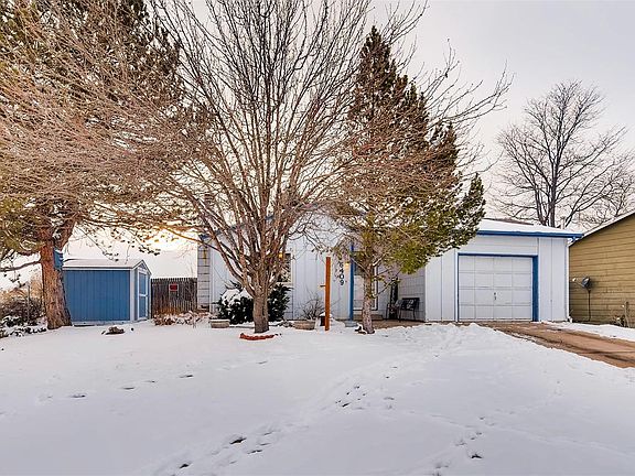 Beautifully kept ranch style home in Skyview Subdivision. 3 BD, 1 BA, 1 car attached. The space feels bright and open, but can be super cozy feeling with the wood-burning fireplace in the living room. Laundry on main floor makes this home easy to live in with no stairs! Enjoy afternoons outdoors on the back deck and patio. Located on large lot w/ mature trees and abuts open space. Quiet neighborhood situated between Loveland & Fort Collins for easy access.