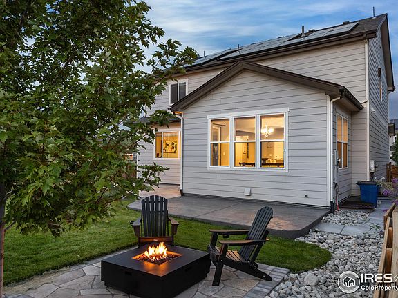 Experience Colorado living at its best in this 4-bedroom, 3-bathroom home on a corner lot in Wyndham Hill! Backing to open space with stunning mountain views, this home offers both beauty and functionality. The inviting two-story entry leads to a bright, open-air floor plan with a dedicated home office, perfect for today's lifestyle. Upstairs, you will find all 4 bedrooms, including the spacious primary suite, which impresses with oversized windows, a five-piece ensuite bath, and a large walk-in closet. Convenient upstairs laundry adds ease to daily living. The basement includes a finished room and roughed-in plumbing, ready for your future vision. Enjoy the expansive mountain views on your beautiful, stamped patio, or at the built-in gas fire pit! Enjoy paid off solar, which helps offset the energy bill! Wyndham Hill is rich with amenities including parks, trails, a pool, and open spaces all right outside your door.