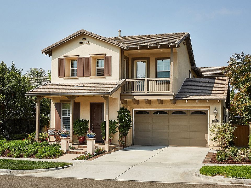Located in one of Carlsbad's most desired communities, this exceptional home exudes sophistication with custom paint, stainless steel appliances, granite and hardwood flooring. The downstairs flows seamlessly with a connected kitchen, family room and dining area. The expansive dream kitchen offers abundant counter space, a large island and plentiful, rich cabinets. The charming family room features a brick fireplace, a media nook and surround sound. A large, separate front room offers abundant space for formal dining and living areas. A downstairs bedroom and bath creates a private space for guests. The master bath features dual vanities and a soaking tub. With park views, the upstairs loft was enclosed to create a fifth bedroom or a spacious office or play area. The lush backyard was featured on HGTV and includes custom-tiled hardscape and separate spaces to lounge and dine. The AC unit was moved to the side yard, giving more space and tranquility to the backyard. French doors off the kitchen lead to a courtyard oasis that soothes with a tranquil fountain and provides a cozy nook to entertain. The park next door means no neighbors on one side and serves as an extension of the backyard. Custom raised planting boxes offer an edible garden for the aspiring chef. Walk to Poinsettia elementary school, Pacific Ridge, Bressi Village shopping and the Bressi Ranch Pool and Clubhouse. The walkable Bressi Ranch pool is heated year round and rivals a luxury resort with a stunning layout and gorgeous, plush seating. It also features a second kiddie pool with a child-friendly sloped entrance, a large hot tub, outdoor fireplaces, barbecues and a thoughtfully designed clubhouse. With beautiful beaches, excellent shopping, 5-star resorts and world-class golfing just minutes away, this is truly a special place to call home!