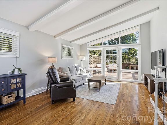 Stunning mid-century modern home filled with natural light and timeless style in Charlotte’s sought-after Starmount neighborhood, known for tree-lined streets and classic homes in a prime central location. Hardwood floors span the main and upper levels, creating an open, airy feel. The home offers 3 spacious bedrooms and an updated full bath with tile flooring and double sinks. The lower level features durable LVP flooring, a built-in electric fireplace, and flexible space ideal for entertaining or relaxing. The updated kitchen showcases granite countertops, tiled backsplash, island seating, and modern amenities. Step outside to a private backyard oasis with a large deck, paved patio, covered built-in BBQ area, and fenced yard with privacy fencing. Enjoy an established neighborhood feel just minutes to SouthPark shopping, dining, Uptown Charlotte, and nearby light rail access. Style, function, and location come together beautifully.