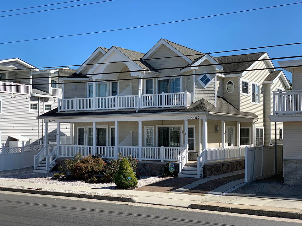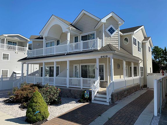 Spacious accommodations, fantastic amenities, and a phenomenal location can all be found at beautiful 6409 Pacific Avenue. This four bedroom, two and a half bathroom, two story townhome with a shared party wall is the perfect shore home away from home. With parking available for two cars in the onsite brick driveway with immediate rear yard access, unloading from a long car drive or grocery trip is a breeze. A wraparound trex deck on the front of the home provides a great space for relaxing, entertaining, or people watching, as well as the first of two entries. Stepping inside from the wraparound deck places you in the open concept, focal point of the home with the living area to the left, stairwell to the second level directly ahead, and the kitchen and dining area to the right. Hardwood flooring runs throughout the entire first level of the home. The Living area has convenient access to the wraparound deck through a sliding glass balcony door, a fireplace, and a large mounted flatscreen tv. The Dining area is a bright space perfect for enjoying mornings, and near the breakfast bar of the Kitchen providing ample dining space for large gatherings. The Kitchen is nothing short of beautiful with granite countertops, dark oak wood cabinetry, two breakfast bars, a walk in pantry, and stainless steel appliances. The second breakfast bar sits opposite the full sized breakfast bar by the rear foyer, across from the lavatory. Just before the rear Den is the utility room with stacked washer & dryer, additional storage, hot water heater tank, and heating system. This rear Den can easily be converted into a bedroom, office, den, or additional storage. Outside the rear foyer and exit is the private rear patio. Gorgeous shrubbery provide privacy and an expansive trex deck makes another great spot to relax or entertain in or out of the hot tub. Proceeding to the second level landing places two bedrooms to the left, with a hall bathroom neighboring, a bedroom ahead, and the Master bedroom to the right. The two left bedrooms share access to the connecting deck overlooking the patio below and residential Wildwood Crest. The hallway bathroom features a double vanity, tile flooring and combination tub / shower. The Master bedroom features a private deck overlooking Pacific Ave, connecting ensuite bathroom, plenty of closet space, and a nook perfect for an office space. This beautiful bathroom has tile flooring, a single vanity, a stall shower, and a jacuzzi tub. Home is being conveyed furnished, minus the owner(s) personal exclusions. The home has extraordinary Vacation Rental potential.