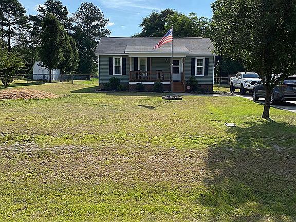 AGENTS - PLEASE DO NOT ASK FOR LISTING. Offering 1.5% to successful buyer's agent at closing. Cute 3 bedroom/1 bath in quiet neighborhood in Lemon Springs. Rocking chair front porch, oversized deck that runs to the new above-ground pool. Cozy eat in kitchen, nice floors throughout, move in ready. Two closets in main bedroom, one is walk in. Storage closet on back of house. Laundry in kitchen behind closet doors. Large fenced in back yard. Selling AS IS. No repairs to be made. Seller offering one year home warranty up to $700. Please call 919.216.7080 to schedule showing.