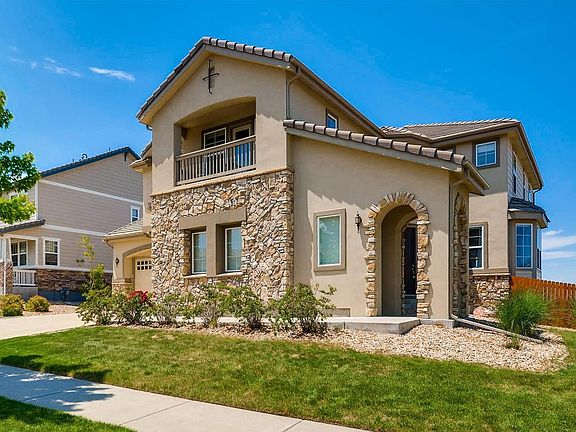 Absolutely the best lot and home in the coveted Wheatlands community! From the upgraded exterior elevation to interior upgrades galore, this home has it all. Inside is your dream kitchen with a gorgeous granite island, stylish back splash, looking over gleaming hardwood floors in to the vaulted family room. Stainless Steel appliances decorate the kitchen along with the upgraded breakfast nook overlooking the serene open space. Whether you're sipping coffee or wine this home has so many spaces to enjoy life! On the main level there's a den/study adjacent to a ¾ bath. Upper level boasts a fabulous master retreat w/ coffee bar [way cool!] private balcony, spa like master bath & walk-in closet, 3 secondary beds [one is a junior suite] and 2 adjoined by a full bath. Tons of potential with the sought after and hard to come by walk out basement facing open space. 3 car garage, dual zoned heat & air, Plus the community pool, surrounding shopping, cherry creek school district...don't wait!