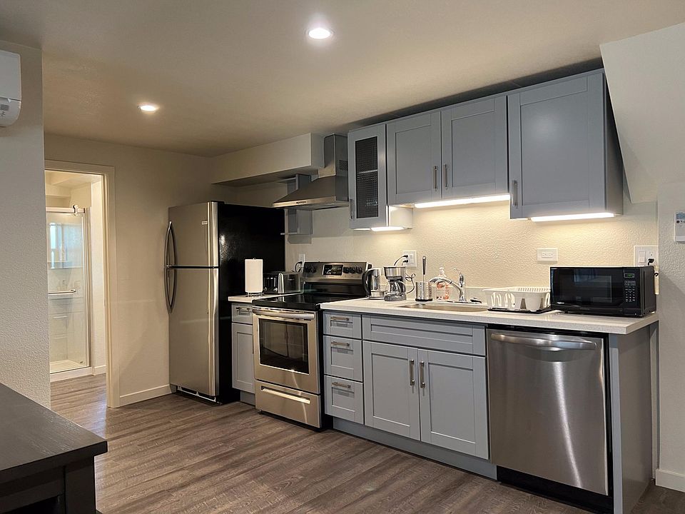 Newly built furnished one bedroom unit. AC, dishwasher, disposal, all new stainless still appliances, Wi-Fi, all utilities included. Large walk-in closet. Secured building. Nice and clean unit. Close to Lake Merritt, HWY 880 and 580 First floor Laundry room on site. Off-street parking. Location: 641-647 East 17TH Street.(cross street 7TH Ave.) in Oakland Deposit $3,500 Rent $2,550 Month-to-month lease. No pets. Show : By appointment. No smoking. All utilities included. Month-to-month. Off-street parking.