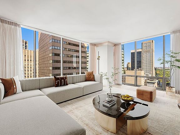 This 1,792-square-foot corner residence captures the essence of sophistication with sweeping north- and west-facing views that showcase Central Park, St. Patrick's Cathedral, and the glittering city skyline through walls of floor-to-ceiling glass. From sunrise to sunset, every room is bathed in radiant natural light.
