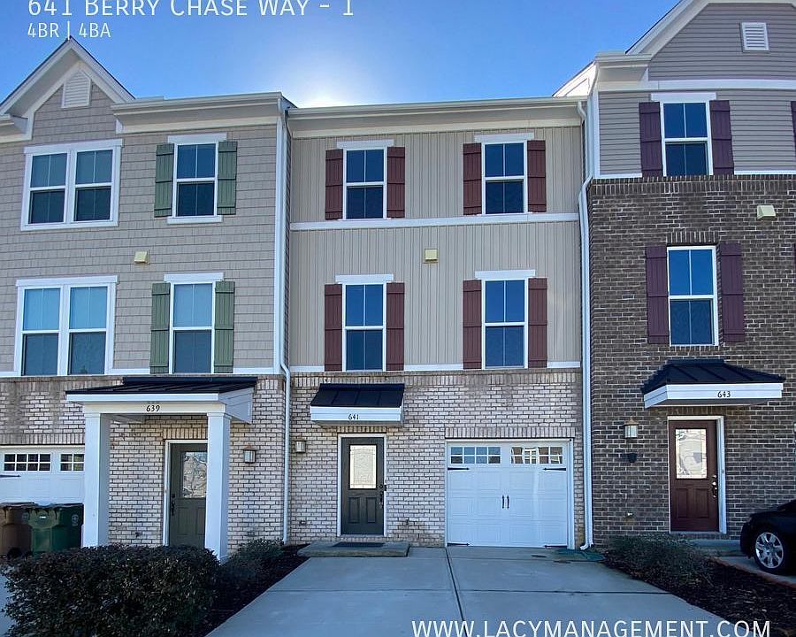 This 2318 square foot townhome home has 4 bedrooms and 3.5 bathrooms. This home is located at 641 Berry Chase Way #1, Cary, NC 27519.