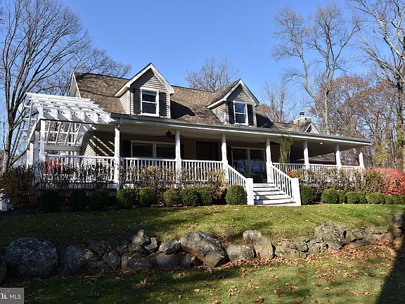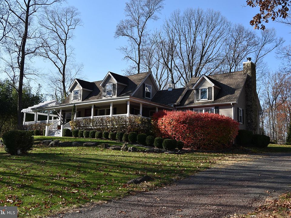 This Upper Bucks 3-bedroom room features a wrap-around deck (500sq ft of front porch) which is enhanced by 2 large ceiling fans and a pergola all helping to beat the heat on the long summer days. Interior features include hardwood flooring, detailed mill work, custom cabinetry, sunken den with vaulted ceilings, massive stone fireplace and a wood stove, recessed lighting, large deck off of breakfast area. All on 2.2 acres. 5 min to the Delaware River.