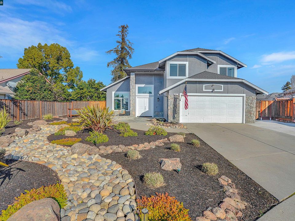 Welcome to this beautifully updated & well maintained 4-bedroom, 3-bathroom home, located in the sought-after Vintage Parkway neighborhood. Tucked away on a peaceful cul-de-sac, this spacious residence offers soaring ceilings upon entering and an abundance of natural light throughout. The thoughtfully designed 2-story floor plan includes a downstairs bedroom & full bathroom, perfect for guests or multi-generational living. Featuring wood tile flooring & many updates, this home exudes modern charm. The updated kitchen boasts stainless steel appliances and a bar top for casual dining or entertaining. The bathrooms have been beautifully updated with contemporary finishes & fixtures. The primary suite is complete with a walk-in closet and a beautiful en-suite bathroom featuring dual sinks & an additional vanity. Step outside to the low-maintenance, landscaped front yard & enjoy the turfed backyard—ideal for relaxing or hosting gatherings without the hassle of regular upkeep. With over $100k in upgrades, including a newer roof, HVAC, water heater, interior paint, kitchen, windows, driveway, & more. Located just minutes from Downtown Oakley, Vintage Parkway Elementary, and the Big Break Regional Shoreline & Trail. Don’t miss the opportunity to make this stunning property your own!