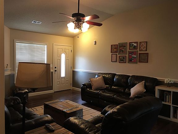 This adorable ranch style home is great for the first time buyer. It has 3 bedrooms and 2 full baths. The great room and kitchen has wood style floors. There is a fireplace and tv alcove in the great room. It offers a large eat-in kitchen with some black appliances to remain. The split bedroom floor plan gives a sense of privacy. There is a covered front porch, a 2 car garage, a patio on the back with a fenced backyard. You will fall in love with this home in District 5.
