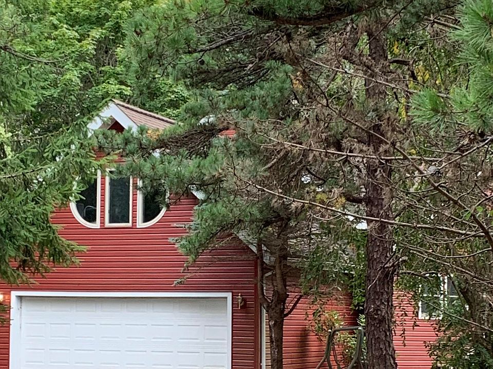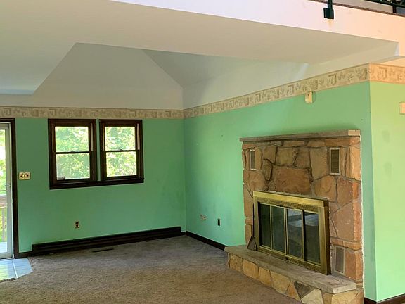 Contemporary home with stylish layout on a lovely lot set back from road. Bit of a lake view from kitchen side of house. Three bedrooms and two baths. Fireplace in living room. Finished family room in basement. Wood stove in family room. Screen porch. Extensive decking. Garage! Paved driveway, too!