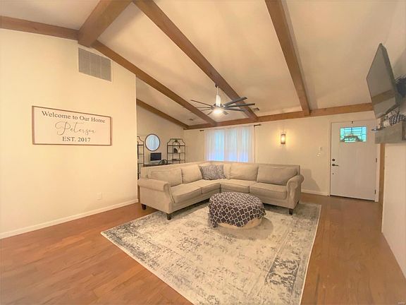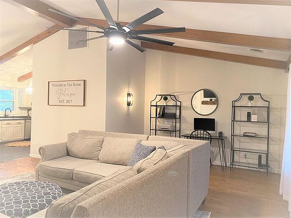 Inviting Ranch home is Setting Pretty on 1.33 acres ml lot! 2 car Attached garage plus a detached garage with concrete floor and electric. When you walk in fron foyer, you will say "Wow, What a Place to Call Home!" From the vaulted ceiling with beams, wood floor, Beautiful kitchen with nice appliances, and Updated baths, this home is ready for you to move right in! Two bedrooms with walk in closets. Laundry area off kitchen along with the utility area and pantry. Covered patio off dining and Kitchen, Separate covered patio with gazebo (hot tub excluded). No basement but plenty of storage. Don't be too late for this opportunity to own in the Krakow area of Washington MO!