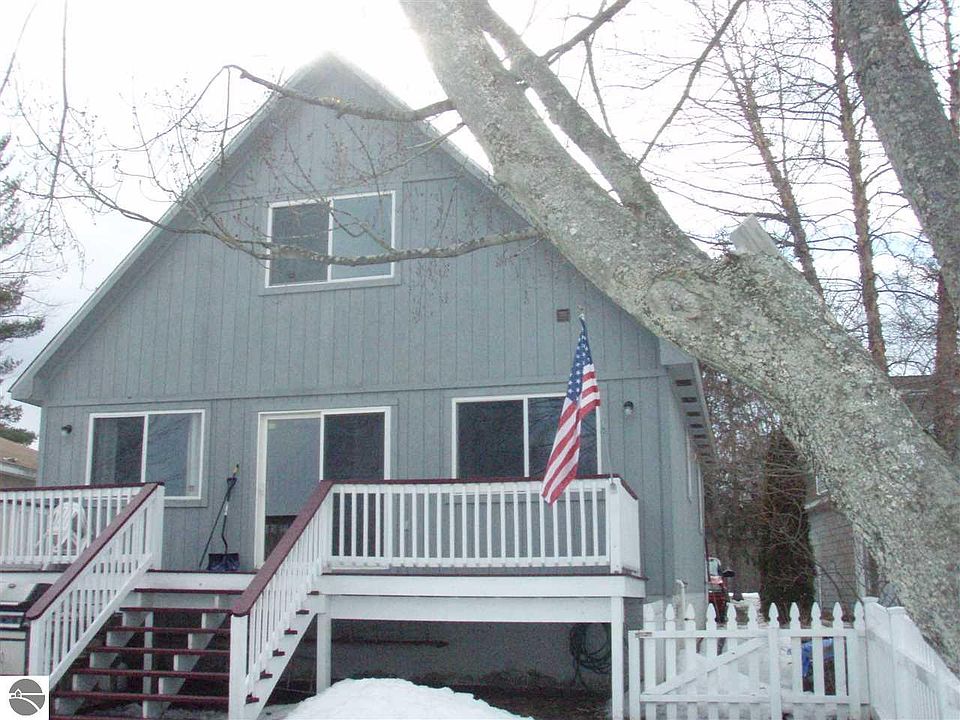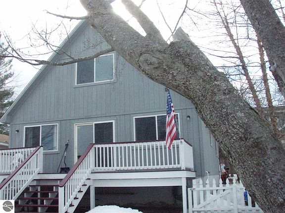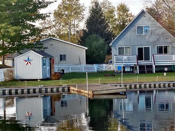 Charming Chalet on desirable Crooked Lake. The home sits on a small inlet just steps away from the main body of the lake giving you all the benefits of the large lake without the wind, weather, and boat traffic. You have the view and access but not the noise. There is room for a garage to be constructed at the rear of the home. The wood pellet stove adds to the ambience and helps significantly with the heating costs. Laminate flooring provides easy cleanup from lake living. Open floor plan, door wall to the deck and lakefront and a vinyl seawall completes the picture of this year round lake home. Well priced and well maintained!