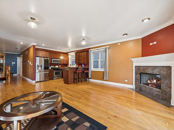 Gas fireplaceOpen kitchenHardwood floorsRecreation roomCentral air and heatCarpet on lower level