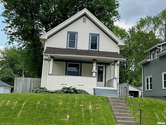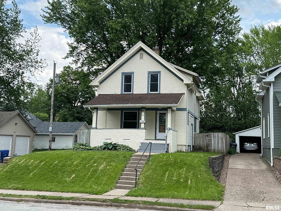 Sit on your covered porch with coffee and relax in the morning. This spacious 3 bedroom boasts charm. Painted in light gray color spectrum. All appliances stay. Fenced in back yard for privacy to the 2 car garage with alley access and fire pit for night time gatherings. Enclosed back porch. Open kitchen with Breakfast bar. Large oak floors in formal dining room, living room and foyer. Open grand staircase to upper level 3 carpeted bedrooms and full bath. Laundry in the basement in utility room and work bench. Rec room, Full bath. Roof 2011/ H2O 2021