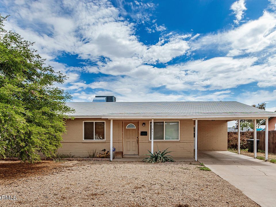 Fantastic 3 bed/2 bath with NO HOA, carport and minutes from vibrant downtown Chandler . HVAC is approximately 8 years old. Newer double paned windows. White kitchen cabinets, stainless steel appliances and eat-in dining area. Large primary bedroom with it's own bathroom. Primary bathroom has been updated, including a tiled shower. Tile, ceiling fans and lights throughout the main living areas. Extended covered back patio. Huge lot ready for your vision. Blocks from the park and nearby school.