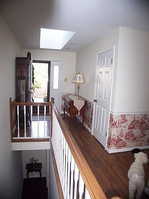 Entry opens to large formal living room w/fireplace, formal dining room with vaulted ceiling and sky lights for lots of natural light. French doors open to screened in porch w/ceiling fan for balmy nights. Kitchen comes equipped with GE Range and built in Microwave, Birch upgraded cabinets, corian countertop, with wainscot paneling. Open to a vaulted ceiling breakfast room with French doors that can lead to morning coffee and bird watching on the spacious deck. Large main bedroom has large window seat and ample closet space. Suite bath has large shower with seat, double sink vanity and tile floors. Separate laundry room with stacked washer/dryer and vanity with laundry tub and plenty of closet space. Hall bath has whirlpool tub/shower, tile floor and large vanity. If not enough, enjoy the finished basement with Berger carpet. Cedar Closet, two storage rooms with plenty of space and extra high ceilings. One car detached garage with garage door opener.