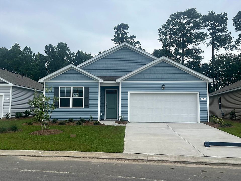 Sun Colony is conveniently located near the new Highway 31 connector with easy access to all of the Grand Strand. This new community offers open concept single story and 2-story homes. Our Cali plan is a thoughtfully designed one level home with a beautiful, open concept living area that is perfect for entertaining. The kitchen features granite countertops, an oversized island, a walk-in pantry, and stainless Whirlpool appliances. The large owner's suite is tucked away at the back of the home, separated from the other bedrooms, with a walk-in closet and spacious en suite bath with a double vanity, 5' shower, and separate linen closet. Spacious covered rear porch overlooking the pond adds additional outdoor living space. This is America's Smart Home! Each of our homes comes with an industry leading smart home package that will allow you to control the thermostat, front door light and lock, and video doorbell from your smartphone or with voice commands to Alexa. QuickTie framing system also included. *Photos are of a similar Cali home. (Home and community information, including pricing, included features, terms, availability and amenities, are subject to change prior to sale at any time without notice or obligation. Square footages are approximate. Pictures, photographs, colors, features, and sizes are for illustration purposes only and will vary from the homes as built. Equal housing opportunity builder.)