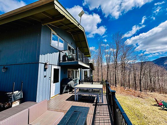 Location! Location! Location! Nestled at the top of Montgomery’s most sought after neighborhood (Alpine Haven), stands this turn key, fully updated, fully furnished, mountain top oasis! This six bedroom, four bath, Swiss Chalet style home sits on 7 acres of pristine nature, boasts ample space for a large family, while its lower level can function as a private AirBnB or Guest House. The lower level features its own private entrance, two bedrooms, living, dining, kitchen, bathroom, wood burning fire place, and walk-out private patio. Views of Vermont’s famous Green Mountains can be seen from every window. The property is deeded as three separate building lots, perfect for a future family compound! The outdoor living spaces cannot be beat: over 1,000 square feet of Trex decking with picture frame edges and PVC handrails, decorative hanging lights, separate screened in deck with build-in Pizza Oven, high-end patio furniture, fire pit, grill, established perennial gardens, rock walls, raspberry and blueberry bushes, and plenty of space to explore! Alpine Haven is known for its sense of community! HOA fees are incredibly reasonable and cover snow removal, trash, water and shared amenities. Amenities include outdoor swimming pool, volleyball, tennis, frisbee golf, playground, and many walking trails. Alpine Haven sits in the perfect location between four-season resort Jay Peak and the picturesque village of Montgomery Center.