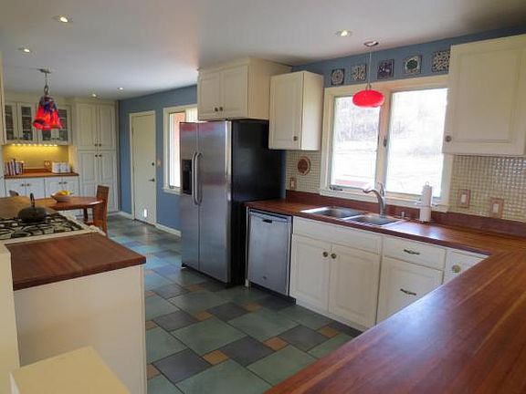 Tastefully updated mid-century gem in Village of Cayuga Heights. Bright & open floor plan w/ refinished hardwood floors, brick gas fireplace & open staircase. Recently renovated eat-in kitchen w/ cherry counters & gas stove. Spacious dining & living rooms w/ many windows providing natural light, distant views & plenty room for entertaining. Main level master suite w/ renovated bathroom w/ whirlpool tub. Spacious lower level family room that could be renovated into guest suite. Large .49 acre lot w/ stone patio. Conveniently located close to Cayuga Heights elementary,Cornell & shopping.