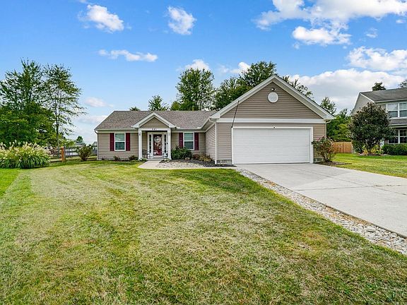Super clean, open-concept 3-bedroom, 2-bath ranch situated on a spectacular cul-de-sac lot just under half an acre. With 1,560 square feet of beautifully designed living space, you'll love the flow of LVT flooring throughout the main living areas. The kitchen boasts wood cabinetry, ceramic backsplash, and a walkout to an amazing stamped patio. Primary bedroom features a walk-in closet and an adjoining full bath with a double vanity. Two additional bedrooms and a second full bath. Large fenced yard with a storage shed and an attached 2-car garage.