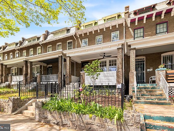 Welcome to 641 Irving St NW, a three-bed, two-and-a-half bath rowhome with garage parking, an open-concept kitchen, a new roof, and solar panels located one block from local shops, restaurants, and bars. The thoughtfully renovated interior features nine-foot ceilings, new systems, original hardwood floors, and brick accents throughout. The main level is ideal for everyday life and entertaining with an extra-large living room, spacious kitchen and dining area, complete with a private powder room. The open-concept kitchen features natural stone countertops, ventilated cooktop hood, ample cabinet storage, stainless steel appliances, and an accent two-seater island. In the adjacent, sun-filled dining room, the inside seamlessly blends outside with sliding doors perfectly framing the view of the grassy yard. Bring in groceries with ease straight from your parked car and enjoy abundant bonus storage space for bikes and personal belongings. Upstairs you’ll find a bright and airy primary suite featuring lofted ceilings. Two more bedrooms connect to the back sunroom, office, or playroom, providing versatile layouts to suit any lifestyle. A renovated hall bath illuminated by skylight with a soaking tub completes this floor. Downstairs in the finished basement, enjoy a recreation room that can be used as a home theater, fitness space, studio, or guest suite. A laundry room and wall-to-wall storage cabinet with butcher block counter provide functionality. The renovated full bathroom features a clawfoot soaking tub, decorative tile, and separate access to the backyard. Outdoor space abounds with a covered front porch and deep backyard perfect for playing or entertaining. Rated as a “Walker’s Paradise” and “Very Bikeable”, enjoy close proximity to Call Your Mother Deli, St Vincent Wine Bar, Hook Hall, and The Midlands Beer Garden. Explore DC and beyond with the Georgia Ave-Petworth Metro stop a few blocks away as well as numerous bus stops close by. Welcome home!