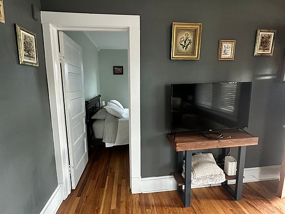 This home is a charming, 2 bed/1 bath with a small 3rd room that doubles as a walk-in closet, office or extra storage. Fenced in back yard, large front porch and spacious back deck. The house features beautiful real hardwood floors, fresh paint, bright natural lighting, comfortable sleeping and living spaces. All new appliances with the exception of the fridge and washer/dryer machine. Private car port. Unfinished basement. Friendly neighbors. Trash pickup. The backyard has a semi private fence, established edible herbs and fruits such as blackberries, raspberries, a fig tree, many culinary herbs and perennial flowers and large garden plots for use. Lease duration is a minimum of 1 year. Tenant is responsible to maintain lawn, (lawn mower is provided.) Renter is responsible for all utilities. NO SMOKING. No drug use. Background check is mandatory.