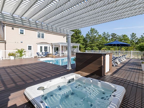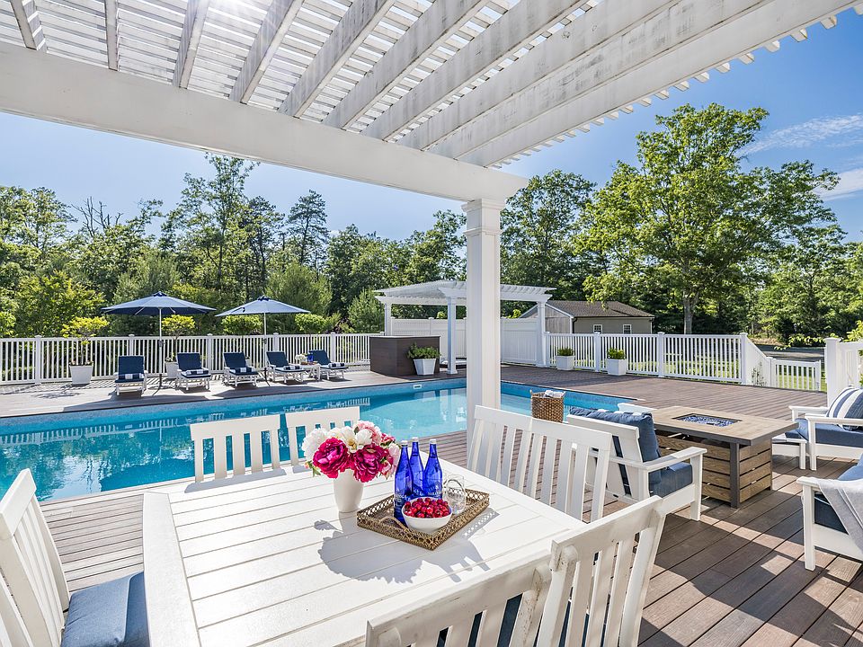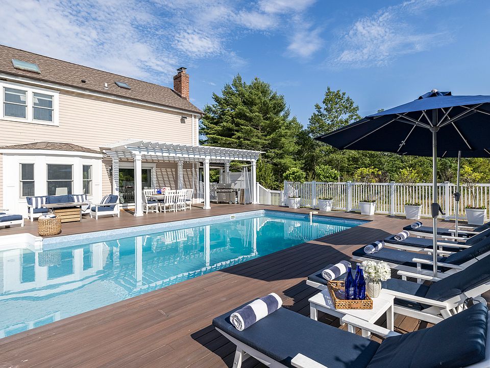 Rental Registration #: RR-25-794 Welcome to this 3400 sf beach home with 4 BR and 3 BA, situated on 3.5 acres at the end of a private cul-de-sac. Two dedicated work spaces with desk and ultra-comfort chairs. Gym equipment w/ Peloton bike. Pool open from April to about Thanksgiving weather permitting, hot tub year round, fire table, professional grill, outdoor heaters, deck is private fenced in. Village fringe property is 1.5 mi to Sag Harbor Village and about 2 mi to East Hampton Village.This spacious home was masterfully finished and boasts an open concept with gorgeous interiors, including a natural wood and brick fireplace, kitchen with top of the line appliances, and lower level with sophisticated finishes. The bathrooms are the epitome of understated elegance with spa like accents. Among other high-end details are imported large marble slab floors, and french doors that lead to an outdoor oasis - an extensive patio with heated pool, hot tub, and redesigned landscaping to enjoy 3.5 acres of privacy. Sonos entertainment throughout the main level. *Full gym with Peloton Bike, squat rack, dumbbells from 3 lbs to 90 lbs each, 2 benches, bar, and plates, yoga mats, Bosu ball, and bands.*New Pool for 2023. Hot Tub Year Round. Pool is open April until week of Thanksgiving, weather permitting, pool can be heated. Meticulously and professionally maintained.*Two separate work areas with desks and chairs, gig speed wifi with router to support the speed. *Fully stocked Chef's Kitchen with High End Appliances and beverage center. Nespresso classic and Keurig machines, comes with pods to get started and hot water maker. Outdoor professional grilling comes with ample seating under the pergola.*EV Charger *Black out shades*Beach towels, beach chairs, and umbrella *Fenced in deck, very private and pristine property with high end furniture.*Newly implemented messaging platform for any occupant guest to request assistance of any kind.