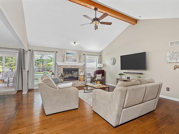 INCREDIBLE 3 bedroom 2.5 bath ranch with TONS of upgrades and oversized two garage WHICH IS MOVE IN READY!!! This home includes, gorgeous engineered hardwood floors thought-out, new windows in 2023, furnace 2023, designer paint, vaulted ceilings, updated fixtures, beautiful kitchen with custom cabinets, granite countertops, custom back splash, top of line stainless steel appliances, recess lighting, main floor laundry, living room with woodburning fireplace, formal dining room, updated hall bath, primary suite with vaulted ceilings and walk in closet, luxury bath with dual vanity, block privacy window and separate tub/shower. The professionally finished lower level offers a fabulous great room, half bath, two separate work shop areas and large storage space. The outdoor area is absolutely stunning with a custom screened in deck to drink your morning coffee while enjoying the professionally landscaped fenced yard with irrigation system. Make your appointment TODAY!!!