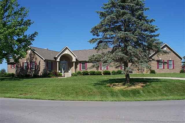 Stunning split open-floor plan ranch with spacious rooms (over 3,000 s/f). Walk in to the 10' ceilings, fireplace, and hardwood floors in living room. Sunroom and outdoor living right off the living space. The home offers both a formal dining and large eat-in/hearth room off the well-appointed kitchen. Tile, granite, custom back splash, under-counter lighting, island, and nice appliances are a part of the stunning kitchen area. Another outdoor space is accessible from the kitchen area. All bathrooms and laundry room offer custom cabinetry for plenty of storage. The newly finished basement is perfect for a family theater room with new carpet and recessed lights. Plenty of storage in the 560 s/f of unfinished basement space, plus the over-sized garage. An additional upstairs unfinished area offers another 400+ s/f for an office/ work location/ play area. Gorgeous landscaping with a front circular drive, as well as, rear entry driveway for the 3-car garage. This home has it all! Great price for the amount of space and close location to Elizabethtown...only 2 miles from town!