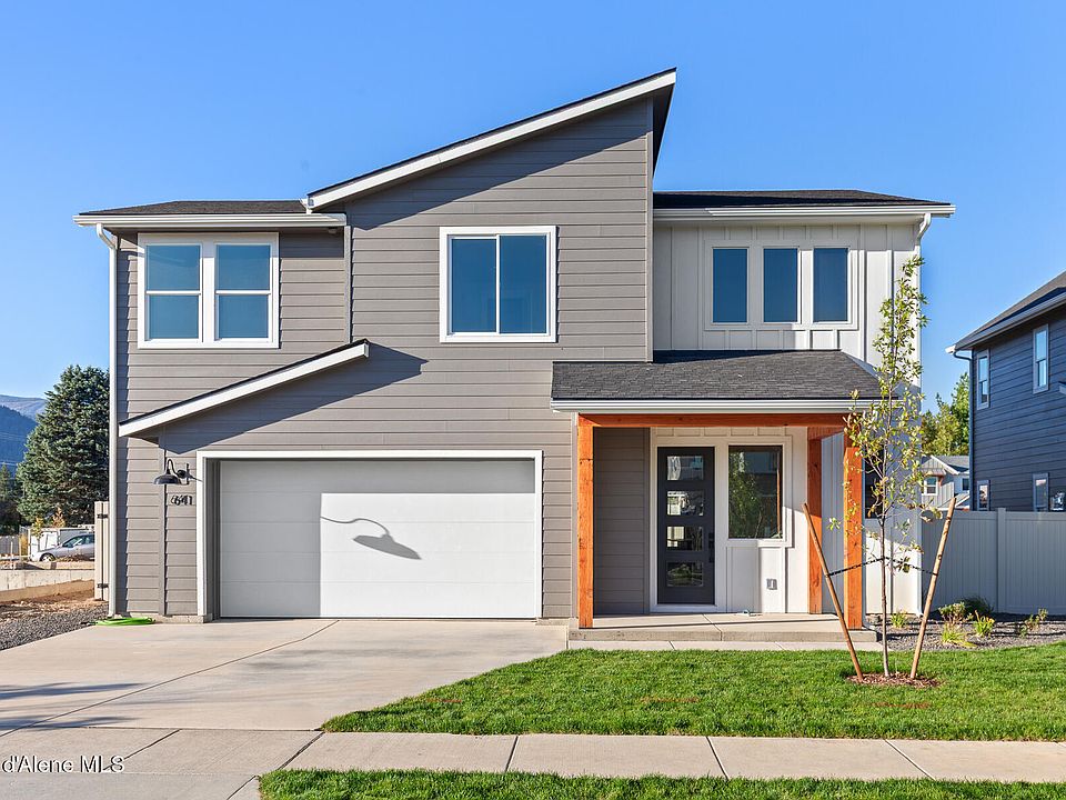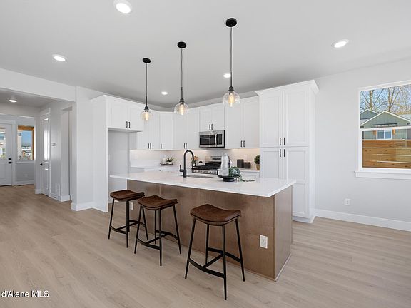 The last Plan 2 in Base Camp can be yours! This home packs the most in for the best price. Paddleboard to breakfast, bike to town all year round, & be on the slopes in 20 min, this is life when you live at Base Camp! The 3 bed, 2.5 bath family friendly Plan 2 has it all. 8' door & lots of windows giving a light & bright, grand feel. A lavish primary bedroom ensuite w/ a tiled walk-in shower, dual sinks & extra large closet. Open kitchen/living space w/ a designated eating area. The bonus loft is the perfect flex space for a game room or office . Quartz counters throughout, soft close cabinets, LVP, Moen fixtures, Stainless appliances, water closets, fully fenced & front yard landscape, ALL INCLUDED! Oversized garage, perfect for all the toys or put a shed in your nice size rear yard. VIEWS OF SCHWEITZER MTN. For the Peace seekers to the adventurers, there is a lifestyle in Base Camp for everyone! Stock Photos.