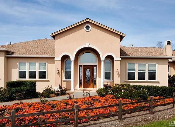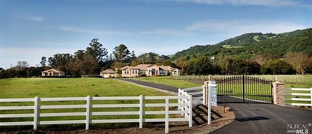 Gorgeous custom-built estate sits behind a gated entry. Built in 2007, this sunlight filled home boasts an open floorplan with custom inlayed hardwood floors. A large family, living and dining rooms with french doors leading out to the lush gardens and vineyard. Home offers gourmet kitchen, oversized master and 2 en-suite bedrooms, game room and office with built in cabinets. Guest house located away from main home, spacious shop 30'X26'