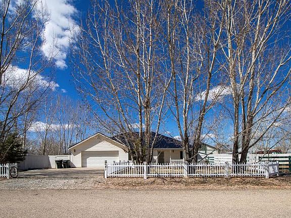 Situated on a sprawling acre adorned with mature trees, this single-level gem boasts 1,872 square feet of cozy living space. Step inside to discover three bedrooms and two bathrooms, offering comfort and convenience. With no stairs to navigate, enjoy easy access throughout. The backyard is a haven for animal lovers, featuring a spacious barn ready to accommodate horses, chickens, goats, and more. Keep your furry friends safe and secure with the included dog fence, while the fenced backyard offers privacy and space for outdoor enjoyment. A durable metal roof ensures peace of mind for years to come. Plus, revel in the freedom of animal rights on your own property. With designated trailer parking and a wood-burning stove adding to the charm, this home truly has it all!