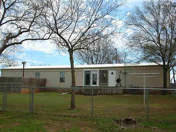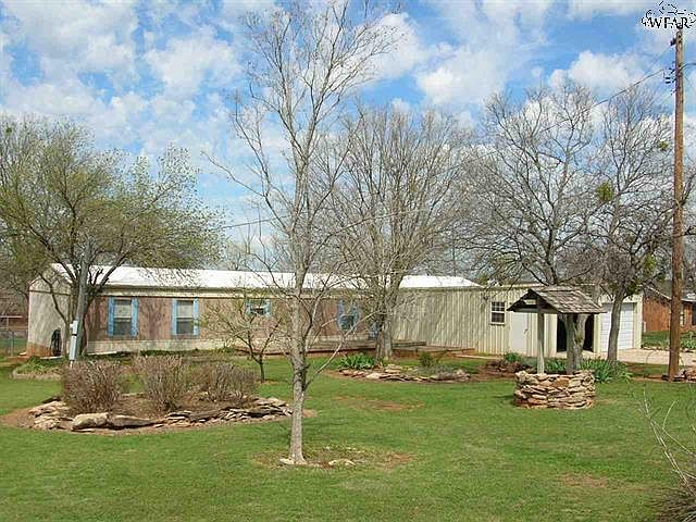 Manufactured home on Lake Kickapoo. 3 bedrooms, 2 baths, 2 car garage/workshop. 1216 sq.ft. Open living, dining, kitchen. Isolated master bedroom. Utility/mud room , wood decks on front and back, chain link and privacy fencing, recent storm cellar. Wonderful lot with mature landscaping. Property is on a Wichita Falls, TX lease lot. The lease is $828 for the lot and $50 for the pier for a total of $878 per year.