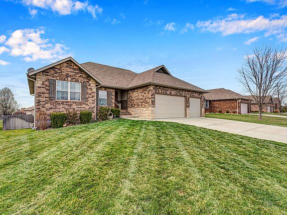 Stunning 5-Bedroom walkout basement home in The Columns at Century Park. Welcome to this beautifully crafted home located in the Nixa School District. With nearly 3,700 sq. ft., this thoughtfully designed 5-bedroom, 3-bathroom residence offers a spacious split floor plan and a 3-car garage--perfect for comfortable living.Step inside to find elegant finishes and open-concept living at its finest. The main level boasts vaulted and cathedral ceilings, hardwood and tile flooring, and two gas log fireplaces--one in the living room and another downstairs. The kitchen is a standout, featuring a large island, granite countertops, undermount sink, stainless steel appliances, tile backsplash, and a walk-in pantry. The primary suite is a true retreat with a spa-like ensuite, complete with a double vanity, granite countertops, floor-to-ceiling tiled shower with glass door and built-in seat, plus a spacious walk-in closet with custom wood shelving.The fully finished basement is perfect for entertaining, offering a wide-open living space with fireplace, a wet bar with granite countertops, and abundant storage. Need a safe space? This home includes a reinforced storm shelter with a solid steel door and concrete walls. Additional perks include a John Deere room, extra storage under the stairs, and a large storage room.Outside, enjoy a beautifully landscaped yard, privacy fenced back yard, sprinkler system, covered deck and patio.With easy access to Nixa schools, McCauley Park, walking trails, the Nixa Outdoor Aquatics Center & Fitness, and more, this home offers both luxury and convenience.Don't miss your chance--schedule a private showing today!