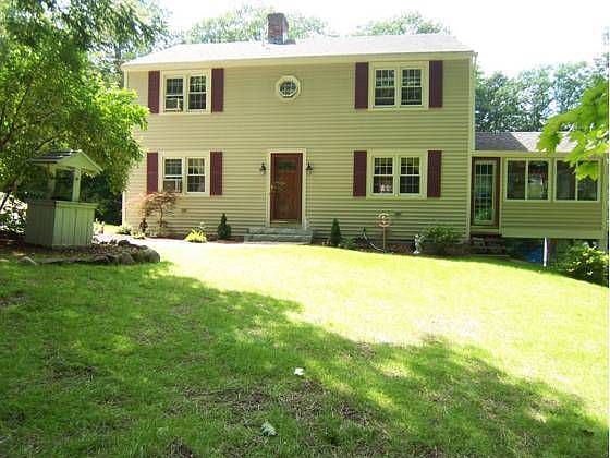 WEARE - 3 bedroom Colonial set on 2.93 acres. Many custom features, tiled eat-in kitchen, top of the line appliances, front to back living room with fireplace, gleaming oak floors, patio doors, deck, In-law in walk out lower level with 4 rooms, mature landscaping, brick walkways, detached garage and more. $239,900