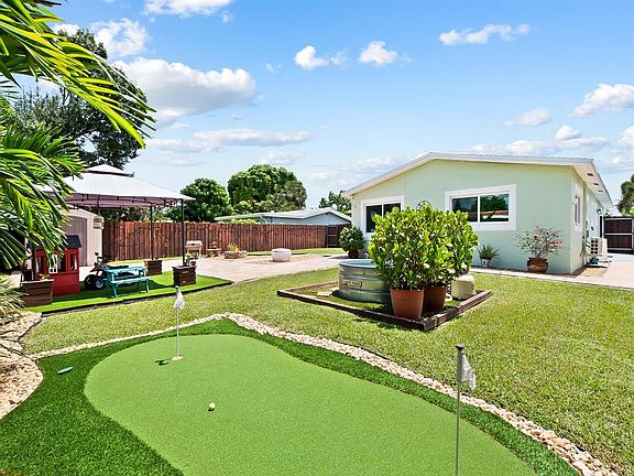 Outside, embrace the epitome of Florida living. Delight in the seclusion provided by the fully fenced private backyard, while the expansive patio area sets the stage for outdoor gatherings. The highlight of this outdoor haven is an enchanting mini golf setup, offering entertainment with an open concept. Lots of room for a Pool and spa. Square Footage from IMAPP
