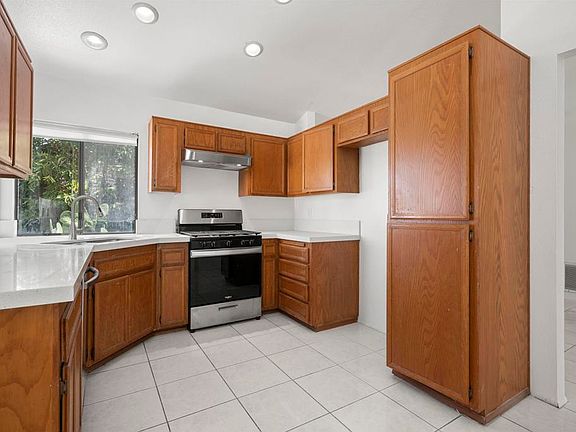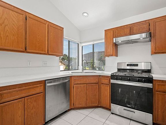 WOW BEST SINGLE STORY HOME FOR YOUR MONEY - LARGE CORNER LOT - WONDERFUL LOCATION - DRAMATIC VAULTED CEILINGS - FIREPLACE IN LIVING ROOM - NICE NEUTRAL SHADES - NEUTRAL WHITE TILE AND NEUTRAL CARPET - QUARTZ COUNTERTOPS - EXTENSIVE RECESSED LIGHTING - 2 FULL BATHS - BOTH BATHROOMS HAVE BEEN REMODELLED (ONE IN MAY, 2024) - STAINLESS STEEL APPLIANCES - NO NEIGHBORS ON ONE SIDE - CLOSE TO PARK - SHOPPING AND FREEWAY - LOW HOA - NO MELLO-ROOS - GREAT OPPORTUNITY TO HAVE A YARD - LARGE 2 CAR GARAGE (OVER-SIZED) - EXTENSIVE SHELVING IN GARAGE - ROOF REPLACED - COPPER PLUMBING - NEWER FAU - NEW HEATER - THE COMPLEX FEATURES A POOL - PLUS EXTRA SPACE FOR RV/ CAMPER, ETC - THIS WILL NOT LAST