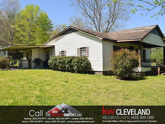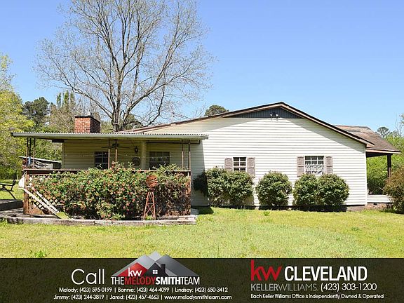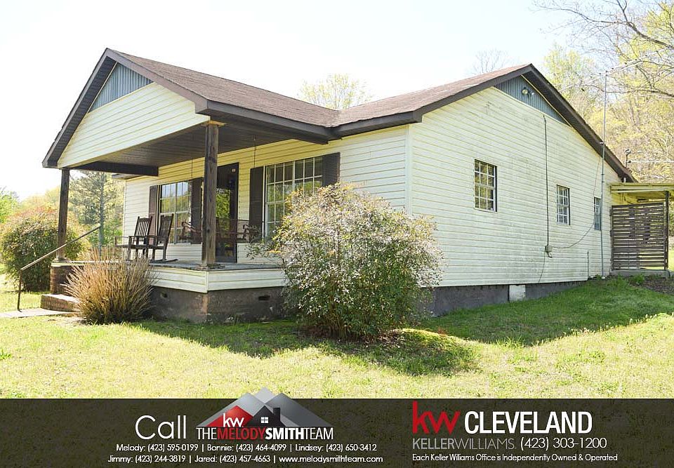 COUNTRY LIVING AT ITS FINEST! This 2BD/1BA Ranch style home has 1,312 SqFt and is situated on 9+ Acres. Home includes a covered rocking chair front porch ideal for relaxing and a finished back porch. Living room/Kitchen combination offers an open floor plan great for entertaining and includes a mountain stone wood burning fireplace. Large laundry/mud room gives access to the level private back yard. Property includes an attached carport, detached 2 car carport, 2 storage buildings, and a barn. There is plenty of cleared acreage for animals, farming, and gardening. You could even build the home of your dreams on the hilltop! Just minutes from the Hiwassee River! Spring runs border of the property. This property boasts of endless possibilities! Home is "SOLD AS IS". Call today for a showing! Check out renovation loan options!