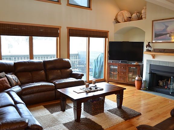 Picture perfect, end unit condo at Park River West with Mountain views.Great room with fireplace opens to private deck to enjoy mountain views. Well-designed kitchen with slate granite counter tops, gas range in cooking island, walk in pantry. Private master suite, bath with heated tile floors & walk in closet. Numerous upgrades that include $12,000 in custom window coverings.This would be a perfect year round residence or short term rental.Relax by the river or enjoy private fishing.