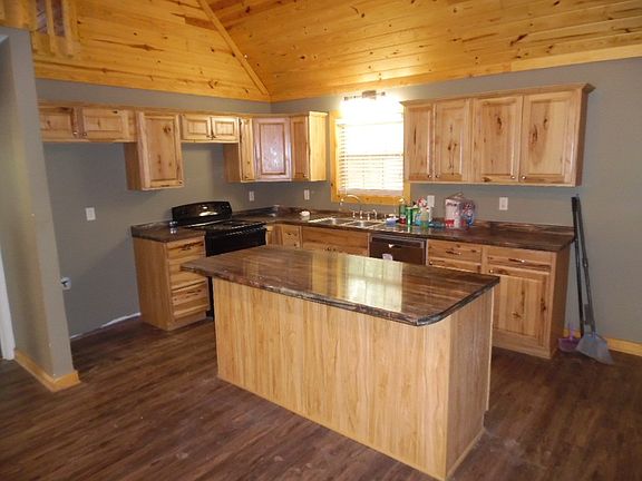 Beautiful Cabin located in Enid Shores, Large Family Room area with double ceiling fans, open plan with Kitchen & Breakfast room area, center island, very nice pine tongue and groove ceilings, canned lighting, large master bedroom with a door going from bedroom into closet and door going into the master bath from the closet also, two loft rooms, one with a closet that can be another bedroom or bunk room, tastefully done stair ways on both side of the family room leading to the upper loft rooms. This one will not last long!