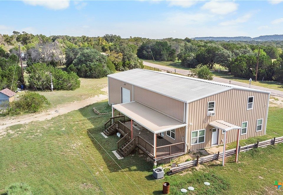 The barndominium shell is approximately 3,600 square feet (per owner) and includes fully insulated shop space with 20-foot-high walls, two large bay doors, one garage door w/ opener and an exhaust fan. The shop is directly accessible from the residence, making it ideal for a variety of uses. Additional features include an aerobic septic system with service contract, county water, all-electric utilities, and fiber optic internet availability. A covered patio and wooden deck provide the perfect setting to enjoy the peaceful views and nature. This property combines comfort, functionality, and scenic beauty in one unique package. Killeen address but Florence ISD.