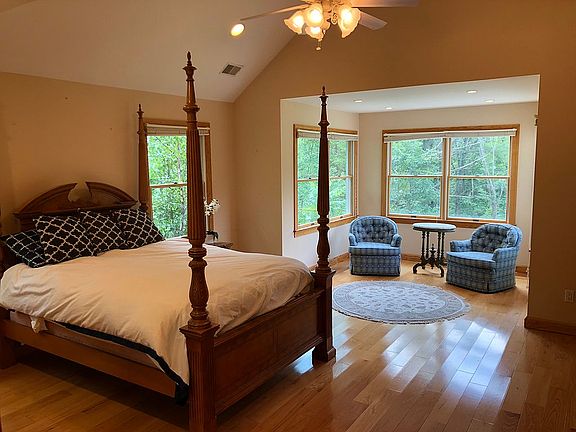 Nestled on a private 6+ acre wooded lot, with spectacular privileged views of green acre property, welcome to this superbly presented home featuring a bright and open floor plan. Crown moldings and hardwood floors are just some of the luxuries found throughout this beautiful home. Large windows fill this space with sun that serves well for entertaining or relaxing. The masterful kitchen and breakfast room satisfies beyond expectation. Exquisite cherry cabinetry and pro-style appliances are complemented by granite surfaces including a custom center island. Atrium doors lead to the covered wraparound porch, gazebo and yard with unobstructed vistas. Master bedroom features a lavish spa-like bathroom on the second level accompanied by three more bedrooms, a bath. Walk up attic offers unlimited storage. This custom-built home features many upgrades.