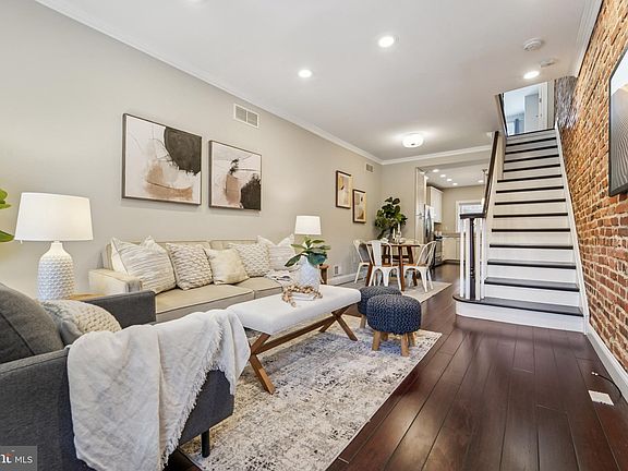 Ideally laid out with 3 bedrooms and 3 full bathrooms, this updated Canton home is the one you have been waiting for. From the exterior you will know you are in Charm City when you walk up the beautiful marble steps, open the door and see the exposed brick wall and crown moulding all throughout the open concept living level. The large front window lights up the living room and the handsome wood floors. Between the kitchen and living area is the dining room area, while the kitchen island provides a breakfast bar, perfectly sized for two stools. The bright and inviting kitchen has white shaker cabinets topped with crown moulding and the light color granite counters pair perfectly with the tile backsplash. With 42 inch wall cabinets and a pantry cabinet there is plenty of storage to go to with the ample countertop space. The stainless steel hood vent above the gas stove helps complete the look of a true chef’s kitchen. Upstairs you’ll find a full bathroom and large rear bedroom with double French doors leading to a private deck (with newly installed composite decking). The front bedroom has a tray ceiling and an en-suite bathroom. The finished lower level provides great additional space that could be a 3rd bedroom, complete with a full bathroom. The rear of the lower level houses the washer and dryer, and provides access to the rear patio. The rear patio is open in the back and could be used as parking for an economy sized vehicle, or enjoyed as an outdoor space. This home is move in ready for you to enjoy for the rest of the fall. Don’t miss out, schedule your tour today!