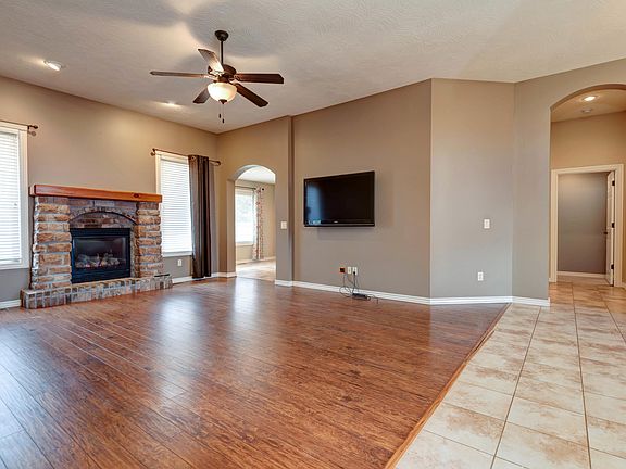 Custom built home by MGM builders in sought after Copper Ridge subdivision! Gorgeous 3 bedroom 2 bath home has an oversized living area with hand-scraped hardwood floors, tall arched doorways, beautiful rock gas fireplace, formal dining, chefs dream kitchen with an abundance of cabinets (all appliances stay including refrigerator) with another dining area adjacent. Large walk-in laundry room which leads to the three-car garage. The master suite is expansive with his/her sinks, jacuzzi tub/shower, and splendid walk-in closet for storage galore! Beautiful brick paver patio, privacy wood fence, and some of the most beautiful lush landscaping you have ever seen! (seasonal pictures included in listing to see the real beauty this incredible home has to offer)