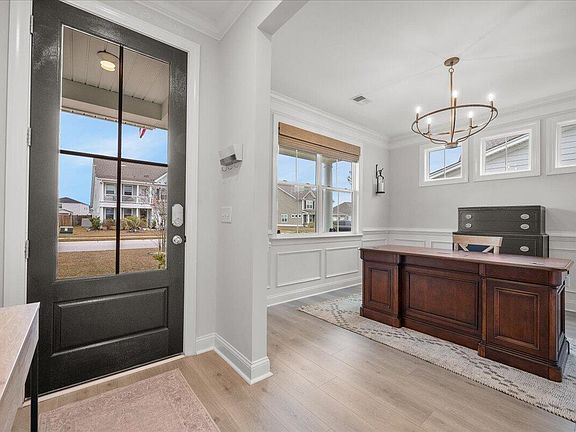 Discover the perfect blend of elegance, comfort, and functionality in this beautifully maintained 5-bedroom, 3.5-bathroom home, situated on a prime lot with meticulous attention to detail. With the luxurious primary suite conveniently located on the first floor, you'll appreciate the ideal layout designed for both privacy and ease of living.As you enter, you are greeted by a versatile flex space, perfect for a formal dining room, a productive office, or a vibrant playroom, catering to your lifestyle needs. Transition seamlessly through the butler's pantry into the fully upgraded gourmet kitchen, featuring stunning granite countertops, a tasteful tile backsplash, a high-quality gas range with a range hood, and a spacious single bowl kitchen sink, perfect for meal prepand entertaining. The inviting living room serves as a cozy retreat, boasting a charming fireplace with a raised hearth, inviting warmth and a focal point for gatherings. The primary suite is a true sanctuary, offering a spa-like bathroom complete with a relaxing tub, a separate shower, double sink vanity, and an expansive closet ensuring plenty of storage space for all your belongings. Upstairs, you will find four additional generously-sized bedrooms, a loft area that can serve multiple purposes, and a lovely balcony offering picturesque views that embody the essence of Charleston living. Custom shelving and tasteful shiplap accents throughout the home provide character and style, enhancing the overall aesthetic. Step outside to the spacious screened-in porch, an ideal space for entertaining guests or enjoying quiet moments outdoors. The large, beautifully landscaped backyard is enclosed by a charming picket fence, creating a private oasis perfect for play or relaxation. Located in an award-winning master-planned community, enjoy an array of amenities, including a sparkling pool, picturesque parks, and miles of walking and golf cart trails. With convenient access to shopping, dining, and professional services, your everyday needs are met with ease. The neighborhood also features the largest YMCA in the state, providing opportunities for youth sports, an indoor pool, group fitness classes, tennis, and pickleball, as well as access to a community library. This home offers exceptional quality, thoughtful design, and a vibrant community that truly has it all. Schedule your private showing today and experience everything this remarkable property and neighborhood have to offer!