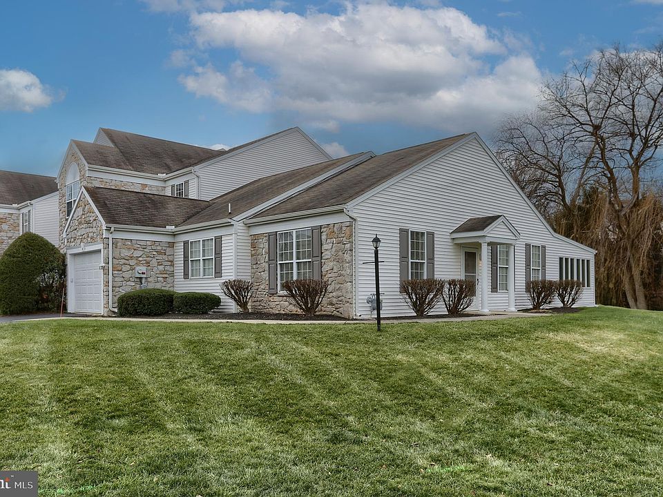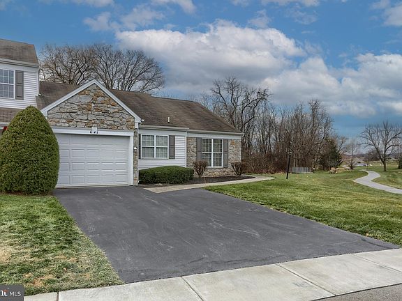 Popular Derry Township community of Deer Run offers carefree living all on one floor. No lawn mowing and no snow shoveling needed! Included in this lovely home is 2 bedrooms, 2 full baths and a sunroom which is heated and air conditioned for year-round enjoyment. This home has great accessibility with wide doorways, no steps at entryways, grab bars in the bathrooms and a brand new step in shower. The expansive living room and dining rooms feature vaulted ceilings, lots of windows for a sun filled room, blinds on all windows and a gas fireplace for those cold winter evenings. And there is a brand new chandelier hanging in the dining room which opens into the kitchen. The eat in kitchen, also bright and sunny, offers all appliances including a built in microwave and refrigerator. Conveniently located off the kitchen is the laundry area and washer and dryer are included. Added to all of this is the perfect corner location close to the walking/biking trail and with a lovely rear view of trees. You even have a driveway with room for two cars! Start the new year in a new home!