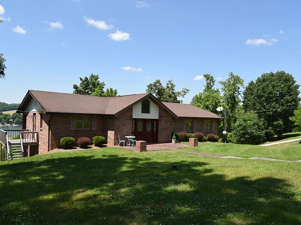 Looking for an affordable home looking over one of our most beautiful lakes and having the most incredible views beyond? This all-brick, one-level home has a HUGE great room looking out on these gorgeous views, a stone fireplace, and gleaming new hardwood floors!